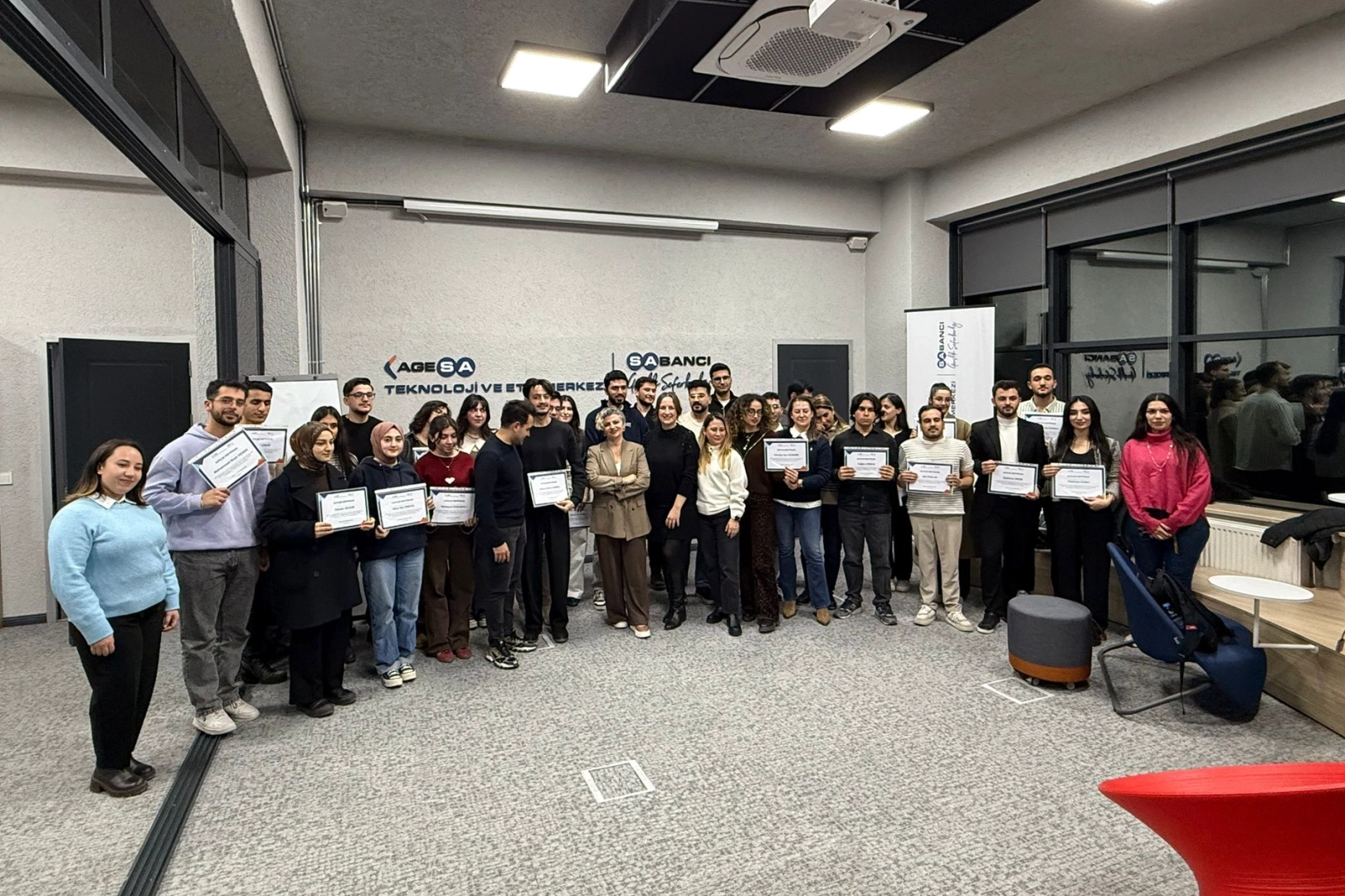 Sabancı Topluluğu tarafından hayata geçirilen Sabancı Gençlik Seferberliği kapsamında açılan AgeSA Teknoloji ve Etki Merkezi, gençlerin teknoloji odaklı yetkinliklerini artırmayı hedefleyen yeni nesil bir öğrenme ve üretim ekosistemi olarak konumlanıyor. Sigortacılık, finans ve mühendislik alanlarını; yapay zekâ, veri analitiği, yazılım ve finansal teknolojilerle buluşturan merkezler, gençlerin teorik bilgilerini gerçek sektör verileri ve uygulamalı projeler ile geliştirmesine olanak tanıyor. Akademisyenler, öğrenciler ve sektör profesyonellerini aynı zeminde bir araya getiren yapı; vaka analizleri, mentorluk programları, eğitim modülleri, yarışmalar, ideathon’lar ve girişimcilik projeleriyle destekleniyor.