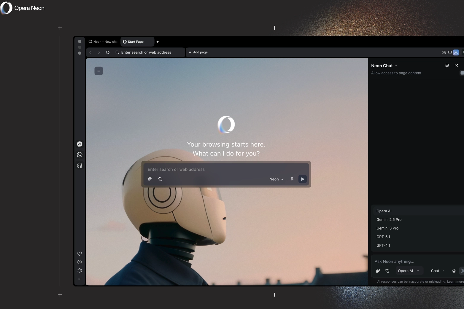 Tarayıcı, aynı zamanda Gemini 3 Pro ve GPT 5.1 gibi en güncel ve üst segment yapay zekâ modellerine erişim imkânı sağlıyor. Opera Neon, Opera’nın yeni nesil yapay zekâ geliştirmelerini test ettiği ve teknolojiyi erken aşamada, en ham haliyle deneyimlemeyi tercih eden kullanıcılar için oluşturduğu özel bir deneme alanı niteliği taşıyor. Bu tarayıcıya erişim, aylık 19,90 dolarlık bir abonelik modeliyle sunuluyor.